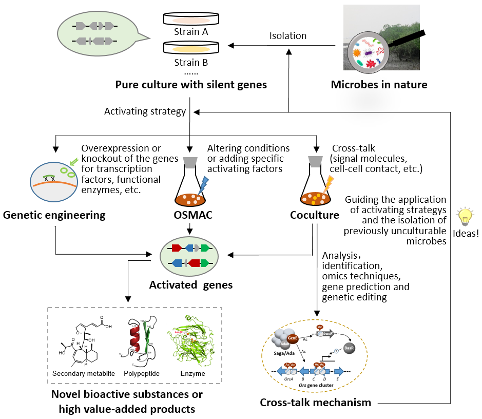 在自然界中微生物共存共演,形成了复杂的生态群落。微生物种间相互交流,促进并维持其强大的生物合成潜力。传统的微生物活性代谢物开发主要通过纯培养手段,导致许多基因簇沉默表达,制约了微生物合成潜力的挖掘。揭示种间相互交流的机制不仅有助于更好地理解复杂的生物合成调控过程,而且能为次级代谢产物的挖掘提供有价值的见解。本综述阐释了微生物种间交流机制的最新进展,探讨了激活生物合成途径的新策略,为利用微生物种间互作开发新天然药物和高附加值化学品提供了全新认知。