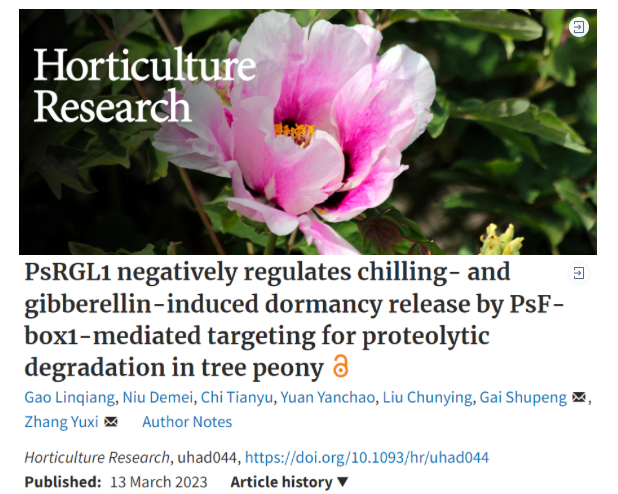 近日,BEAT365唯一官网盖树鹏团队在农林科学领域一区、Top期刊《Horticulture Research》上发表了题为“PsRGL1 negatively regulates chilling- and gibberellin-induced dormancy release by PsF-box1-mediated targeting for proteolytic degradation in tree peony”的研究成果。该研究从GA信号调控的角度,解析了GA信号的负调控因子参与牡丹芽休眠解除的分子机制。