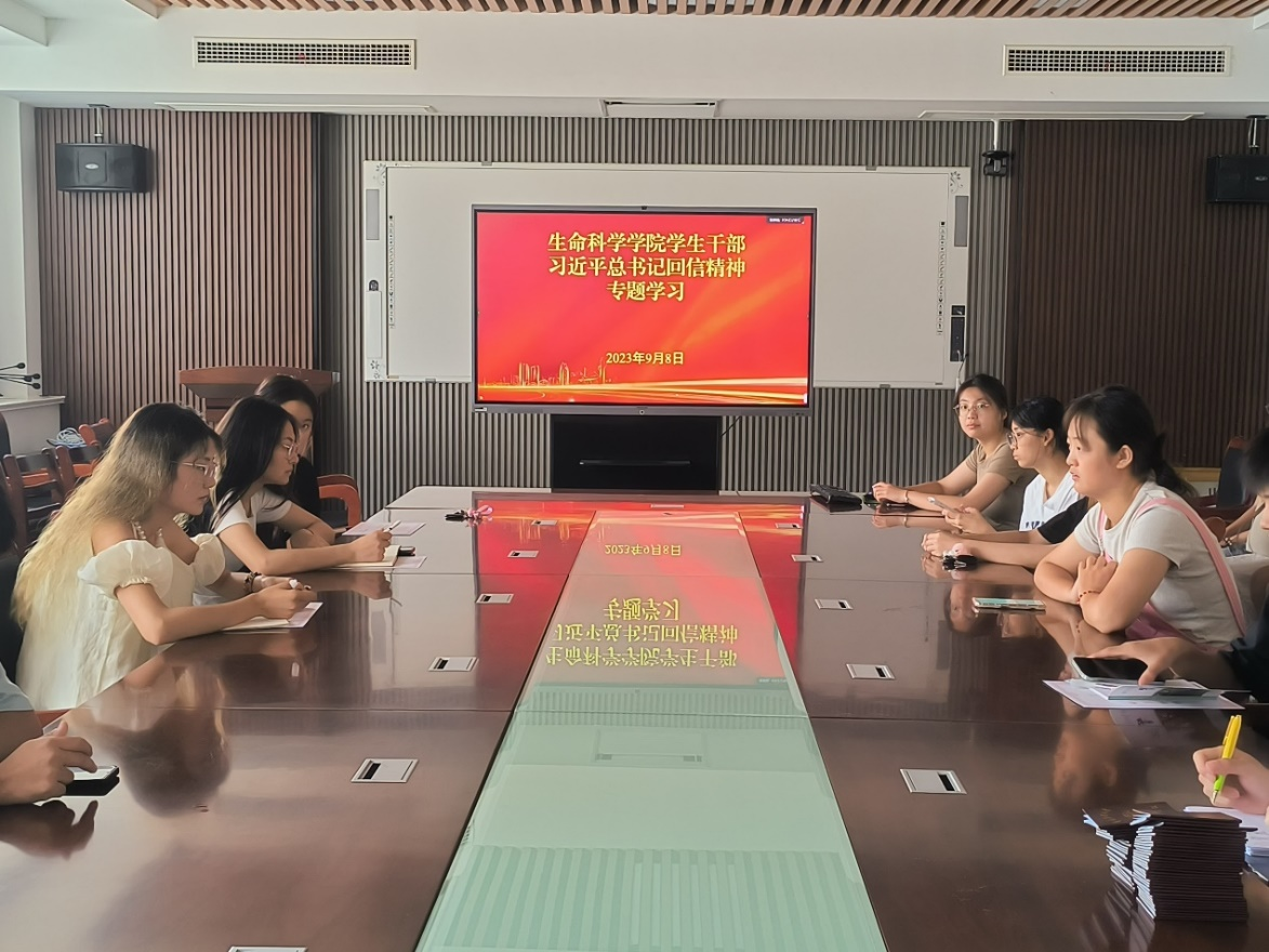 9月8日,BEAT365唯一官网在生物楼C305组织学生干部召开习近平总书记回信精神专题学习会议,会议由学院团委书记王洋主持,辅导员老师王春晓、翟秋月,全体班长书记及学生会部长、大学生发展中心主任参与会议。