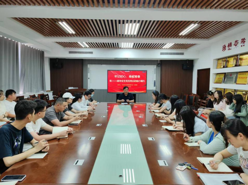 各支部以主题党日活动为依托,创新打造“仪式-回忆-展望”三维送别场景。活动中,党员们重温入党誓词,回顾共同奋斗的学习、科研时光,毕业生党员在党组织的温暖怀抱中,进一步坚定理想信念,强化使命担当。这场充满仪式感的党日活动,恰似细胞有丝分裂,将红色基因精准传递到毕业生的人生新阶段,激励他们在未来续写奋斗篇章。