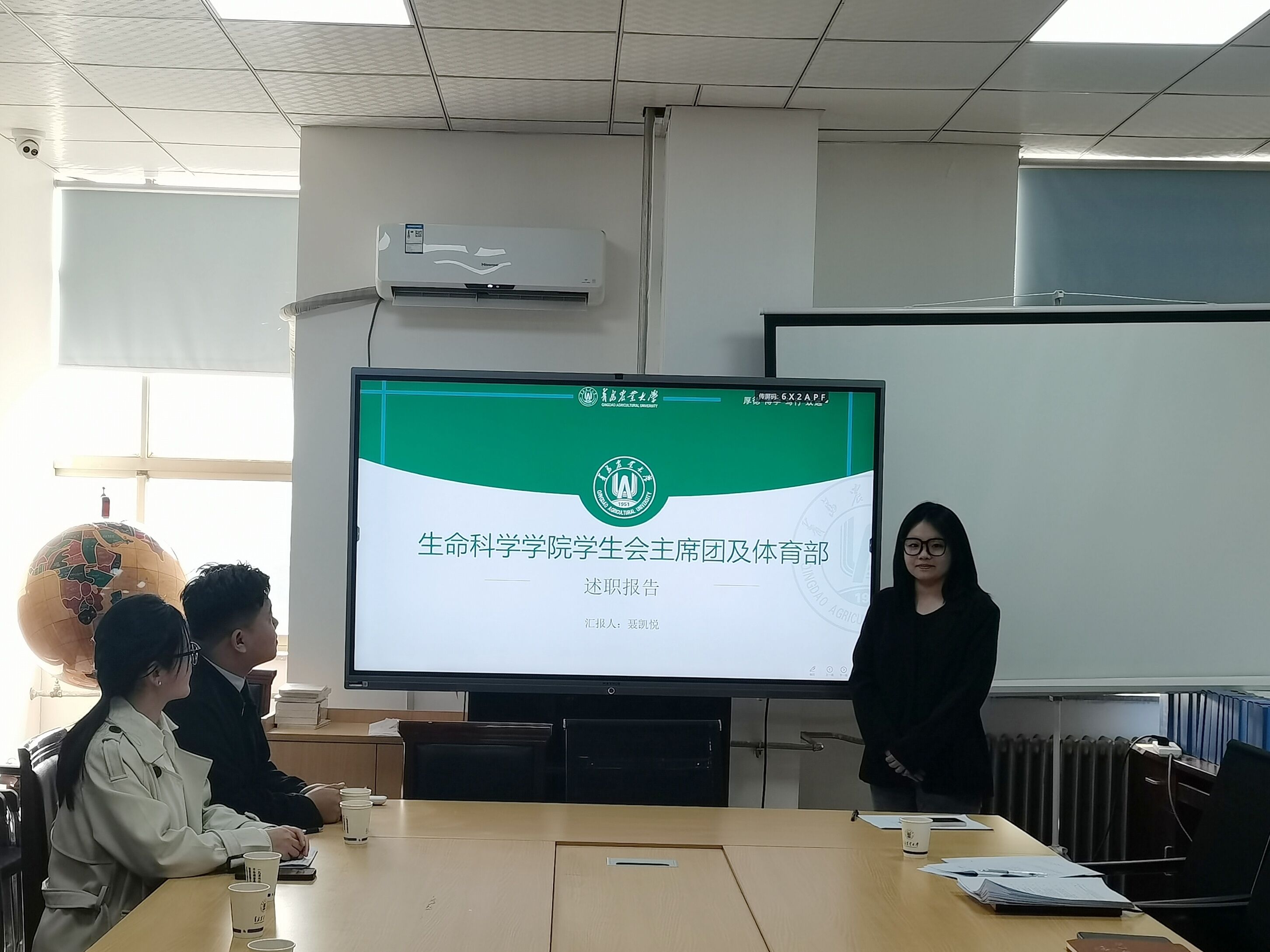 会上,学生会主席团成员和各部门部长分别进行工作述职,介绍了去年的工作完成情况及所取得的成绩,并就今后工作的开展方向做详细汇报。随后,各位评委根据学生会的述职情况进行打分并评价。最后,王洋老师对学生会各部门工作进行点评和总结,肯定之前同学们的努力,同时指出存在的一些问题,对今后的工作提出要求和展望。