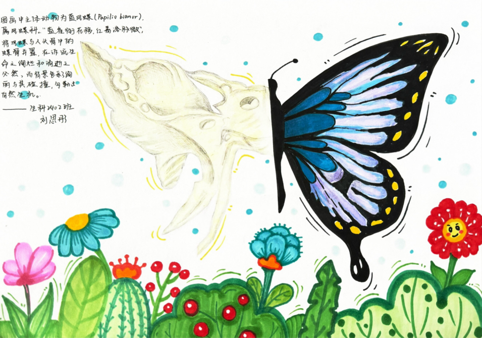 比赛过程中,同学们以笔为舟,在生命科学与艺术的海洋中遨游,他们结合课堂所学,充分发挥想象力与创造力,将复杂的生物知识转化为生动的艺术画面。部分参赛作品聚焦植物世界,用细腻的笔触勾勒出植物的形态结构,作品中植物从破土而出的嫩芽,到舒展的叶片脉络,再到娇艳绽放的花朵,每一处细节都精准还原了植物生长的奇妙过程;部分作品将视角投向广袤的生态系统,用绚丽的色彩描绘出森林中动植物和谐共生的美妙场景,仿佛能让人听见林间鸟儿的欢唱。