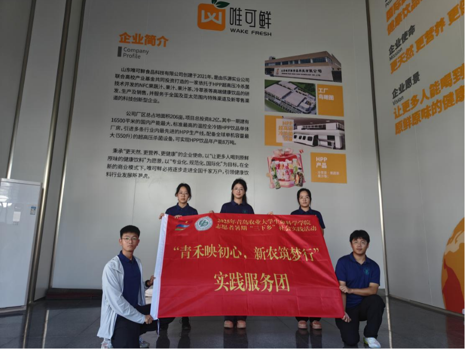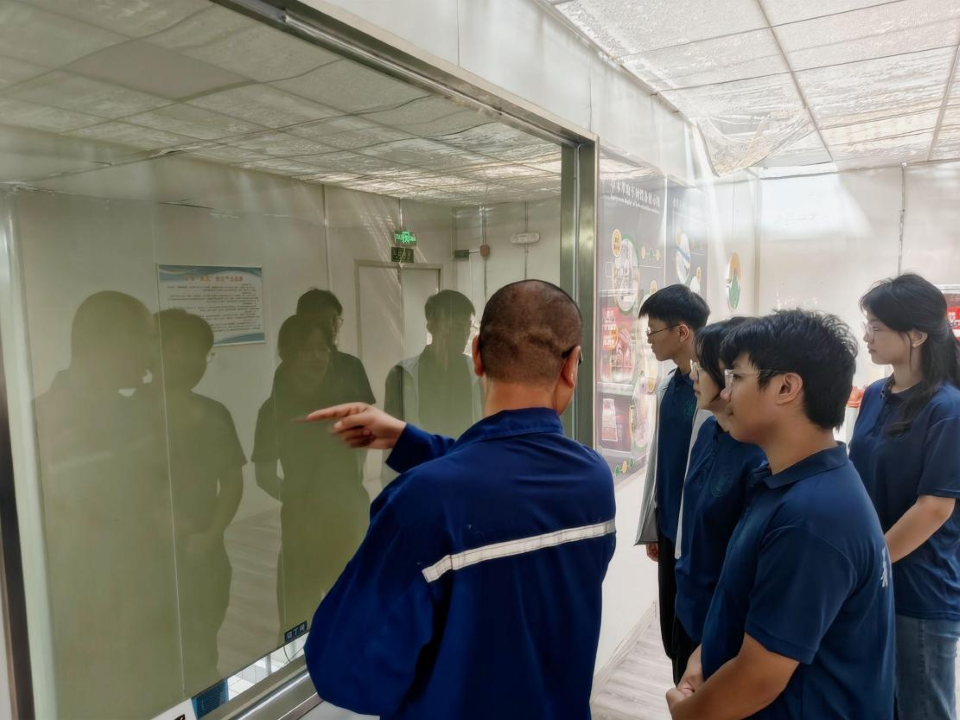 实践团首站来到唯可鲜食品科技有限公司,走在生产车间上方的参观通道,成员们见证了一条智能分拣线如何以98%的准确率高效处理果蔬。当工厂员工许兴邦详解“从田间到餐桌”的数字化管控体系时,青年学子们深切感受到科技对农业增值的撬动作用。